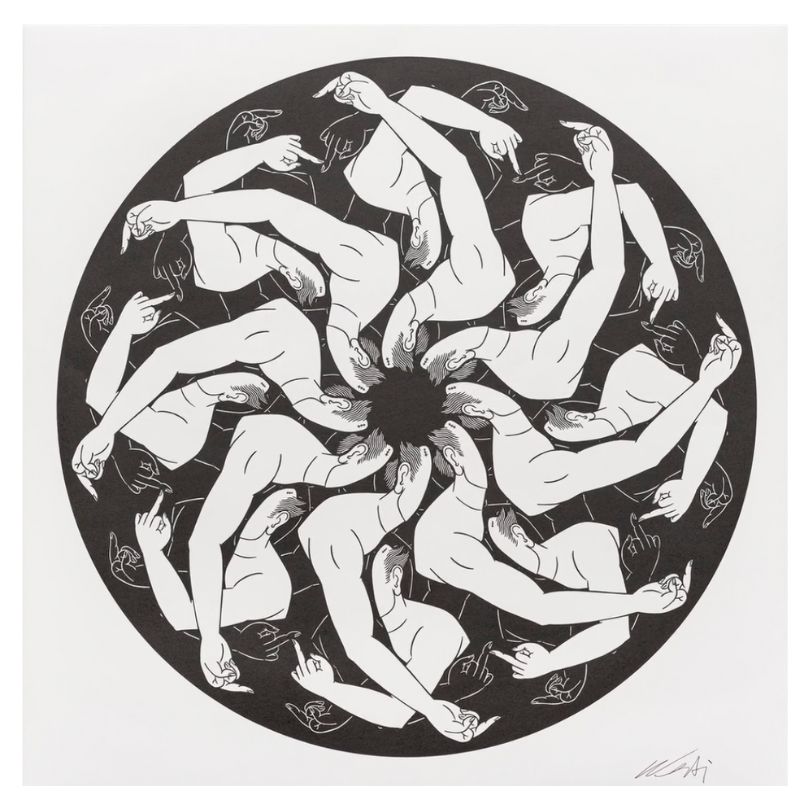 In Circle in Blue and Circle in Black, Weiwei’s iconic gesture radiates outwards in a continuous composition. Weiwei started using the motif of the middle finger in 1995 when taking photos for his series Study of Perspective. In the series, Weiwei stuck up his middle finger to historic landmarks in an act of defiance that asserts our collective right to form, hold and express individual beliefs. For the artist, the power of a simple gesture like this is that anyone can make it.