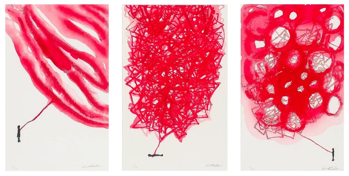 These Chiharu Shiota woodblock prints are available individually or as a set via a lottery from Adachi Hanga Store.