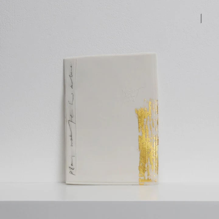 Medium: Embossed porcelain tile with gilding and pencil inscription