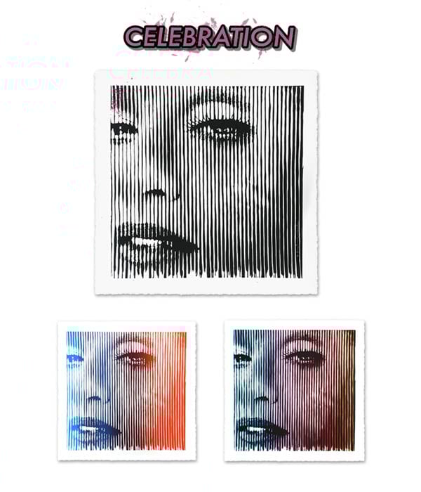 On Thursday, May 10th, at 12pm PST, Mr. Brainwash will be releasing "Celebration". In 2009, Madonna chose this image for the cover of her vinyl single, "Celebration". It will be available in 3 different variations.