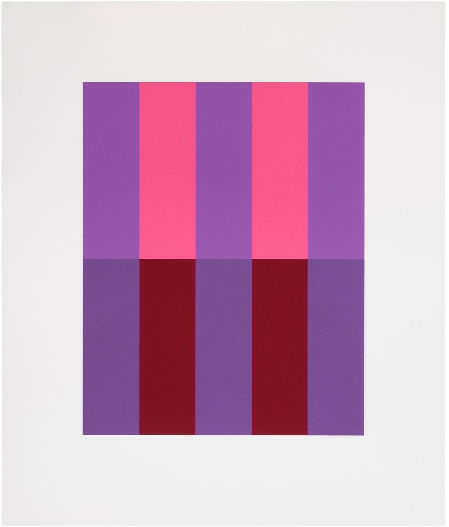 Print 98 is part of an ongoing series of paintings that use sharp-edged geometry to explore colour transitions and the process of layering. When layered or brought into contrast with each other, the colours can either heighten to create a sense of drama, or soften to offer a moment of tranquillity. Throughout the series, the rhythm of the geometry creates a dynamic interplay between light and dark.