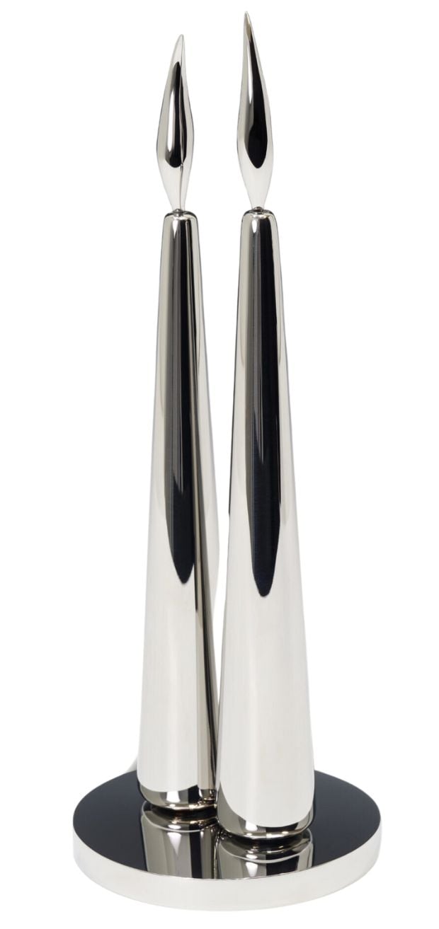 “The candles have evolved over many years. I’ve always been drawn to their simplicity as objects, and their potential for wide-ranging iconographic meaning. They’re often experienced personally, on an intimate scale, yet also serve as religious or memorial symbols. The sculpture includes two candles, conveying a coupling or relationship with a shared sense of loss or meditation.” –Sterling Ruby
